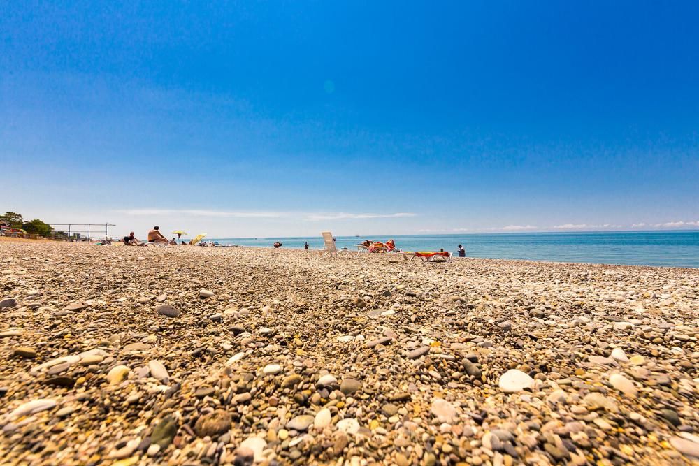 От клуб-отеля до береговой линии – несколько шагов. Пляж усыпан мелкой галькой и сохраняет первозданный вид без излишеств цивилизации.