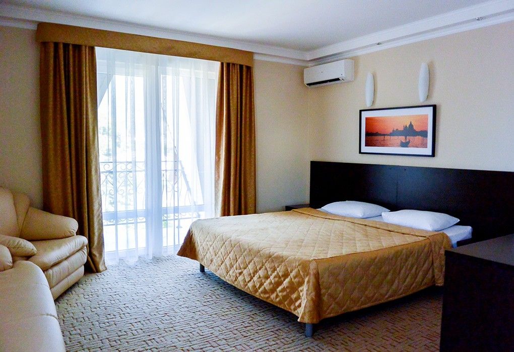 Современные номера категории Стандарт располагают балконом, кондиционером, телевизором с плоским экраном и спутниковыми каналами, холодильником, сейфом, телефоном и бесплатным WI-FI.