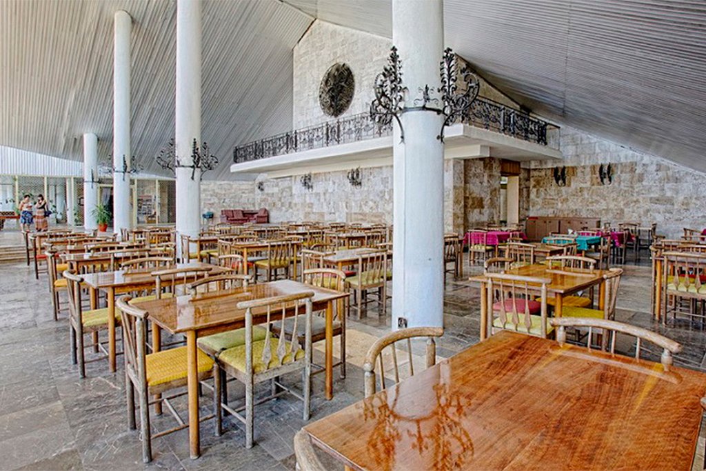 Десятиэтажное ступенчатое здание отеля видно издалека: его необычная конструкция дает возможность великолепного обзора морских далей с каждого этажа гостиницы. Все номера жилого фонда обеспечены санузлами с душем и кондиционером. Телевизоры и холодильники есть в холлах, по одному на несколько номеров.