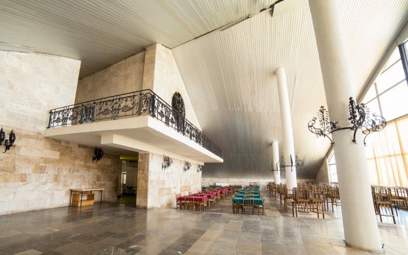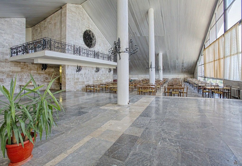 Питание клиентов осуществляется 3 раза в день, комплексно, в гостиничной столовой. Кроме нее работает кафе-бар.