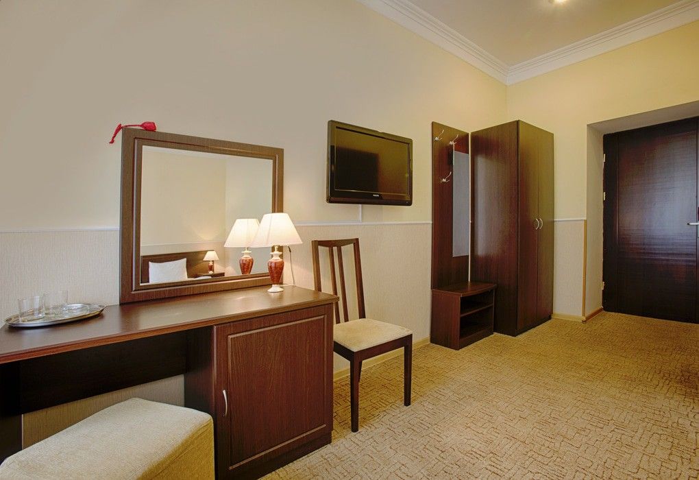 К услугам гостей в пансионате 77 комфортабельных номеров различных категорий. Все номера оборудованы новой мебелью, индивидуальной системой контроля микроклимата, холодильником, телевизором и собственной ванной комнатой.