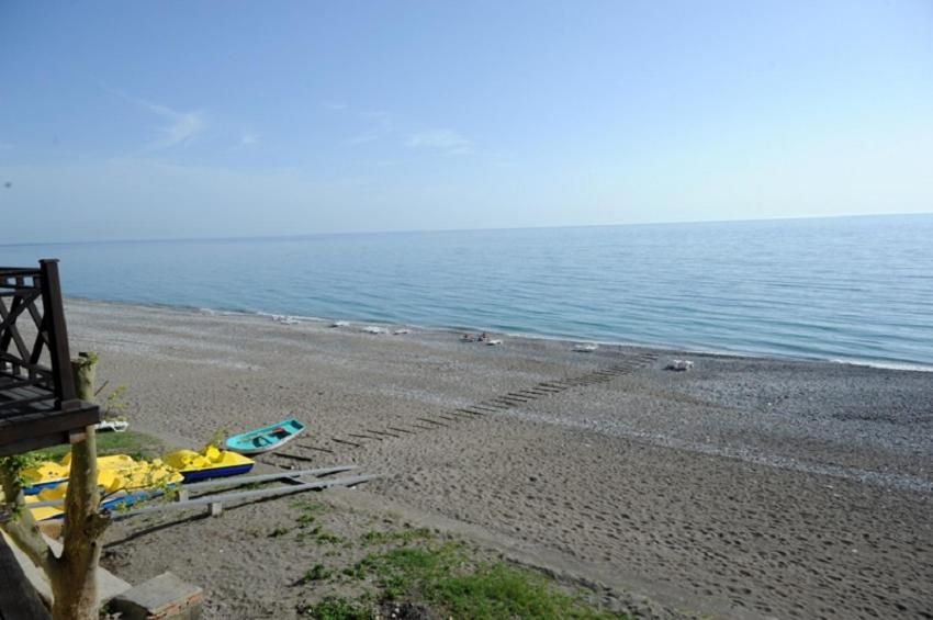 Пляж просторный, лежаки свободные, о таком можно только мечтать в бархатный сезон. Идти от отеля 2 минуты.Море штормило все 5 дней. Вода чистейшая, солёная. На пляже и в море камни ,поэтому нужна обувь для купания. Глубина приличная, детям купаться опасно, только с родителями.