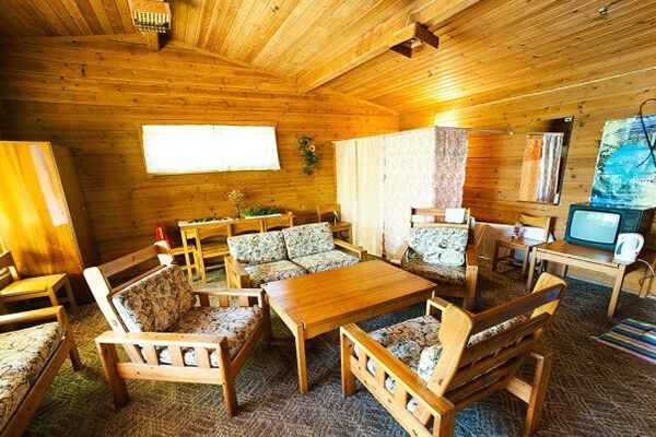 Трехразовое питание прекрасно организовано, система шведского стола позволяет выбирать именно те типы блюд, которые наиболее отвечают личным вкусовым пристрастиям. До границы с Россией всего 43 километра, вглубь Абхазии ехать не придется, расположение очень удобно для тех туристов, кто предпочитает перемещаться на личном автомобиле.