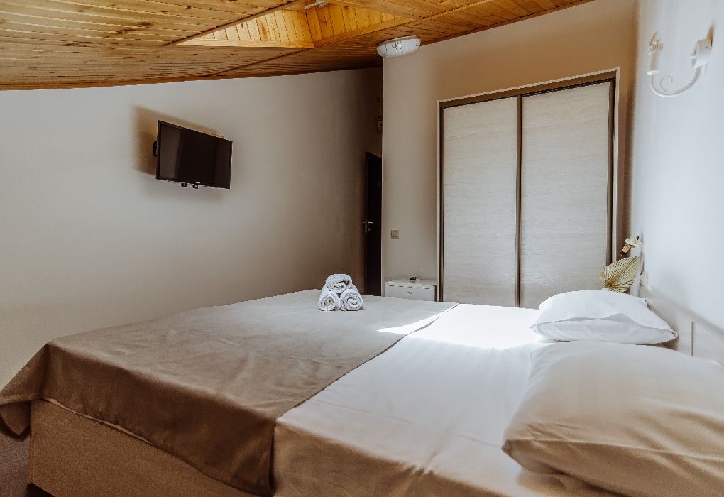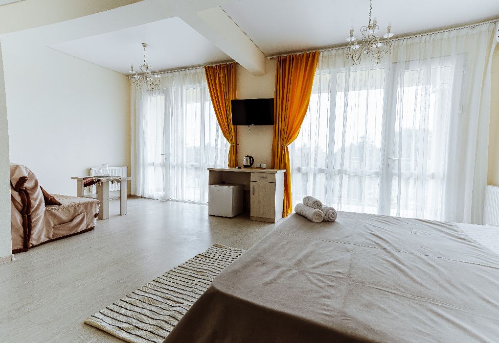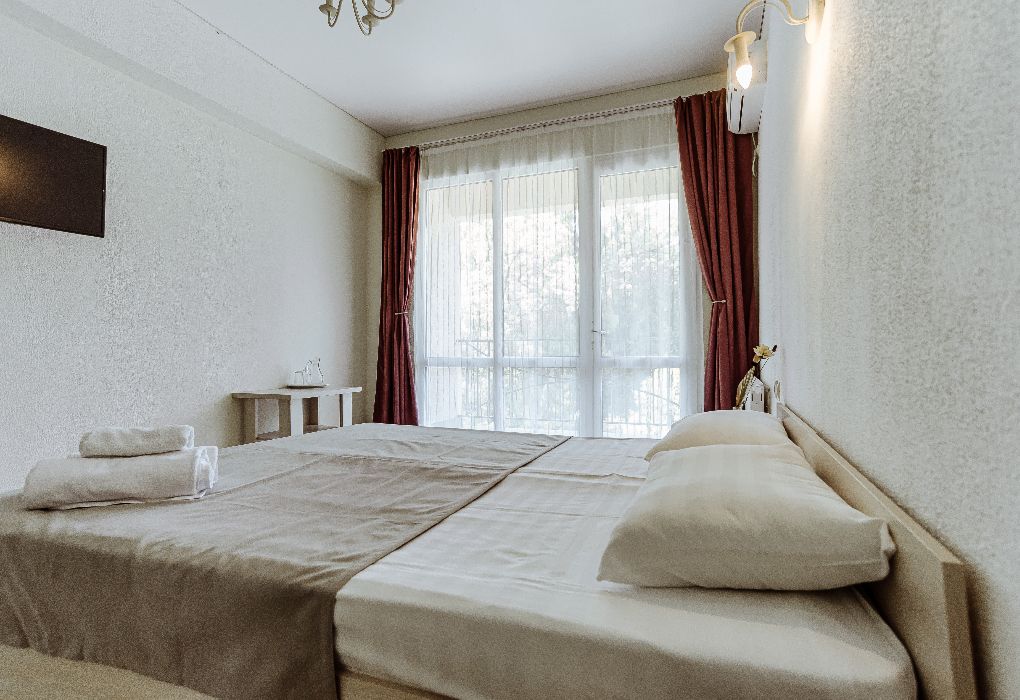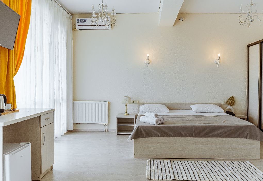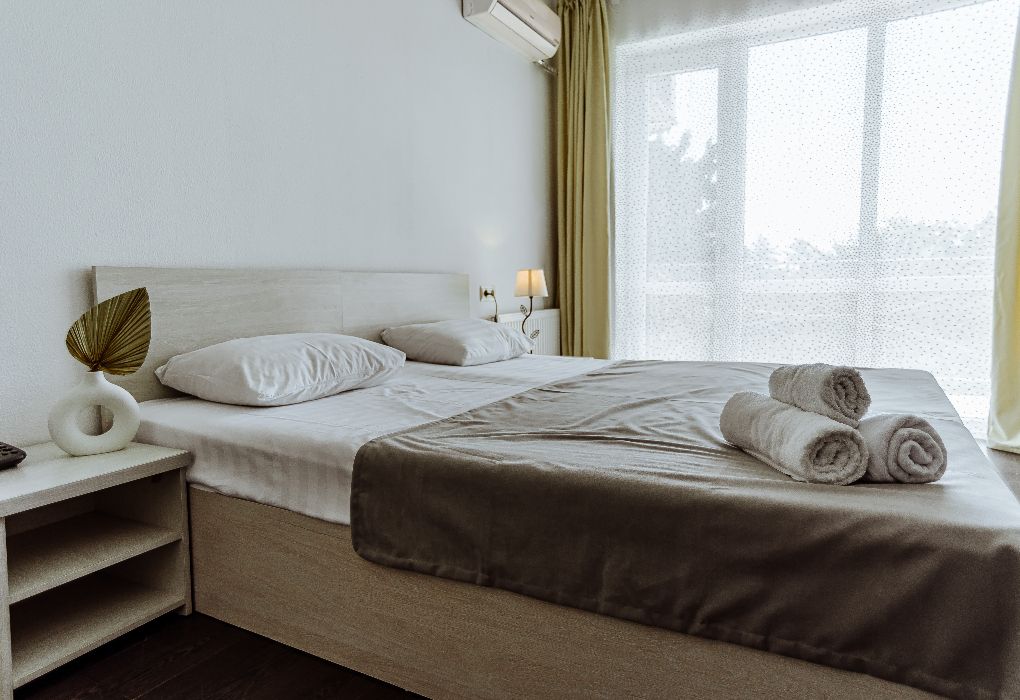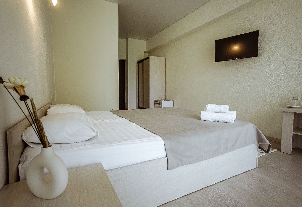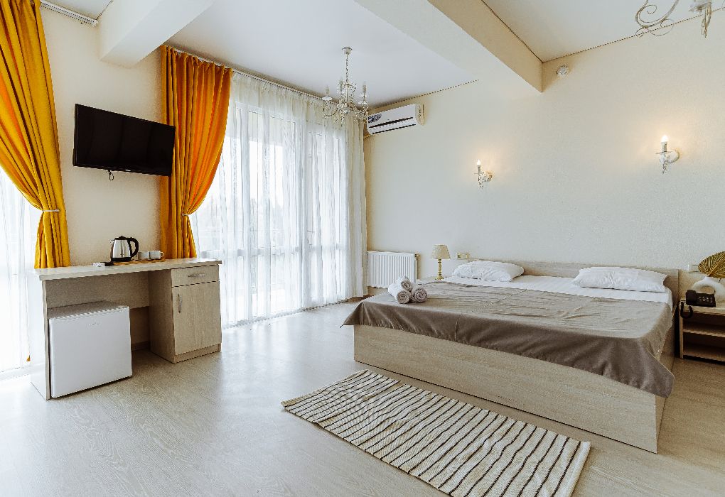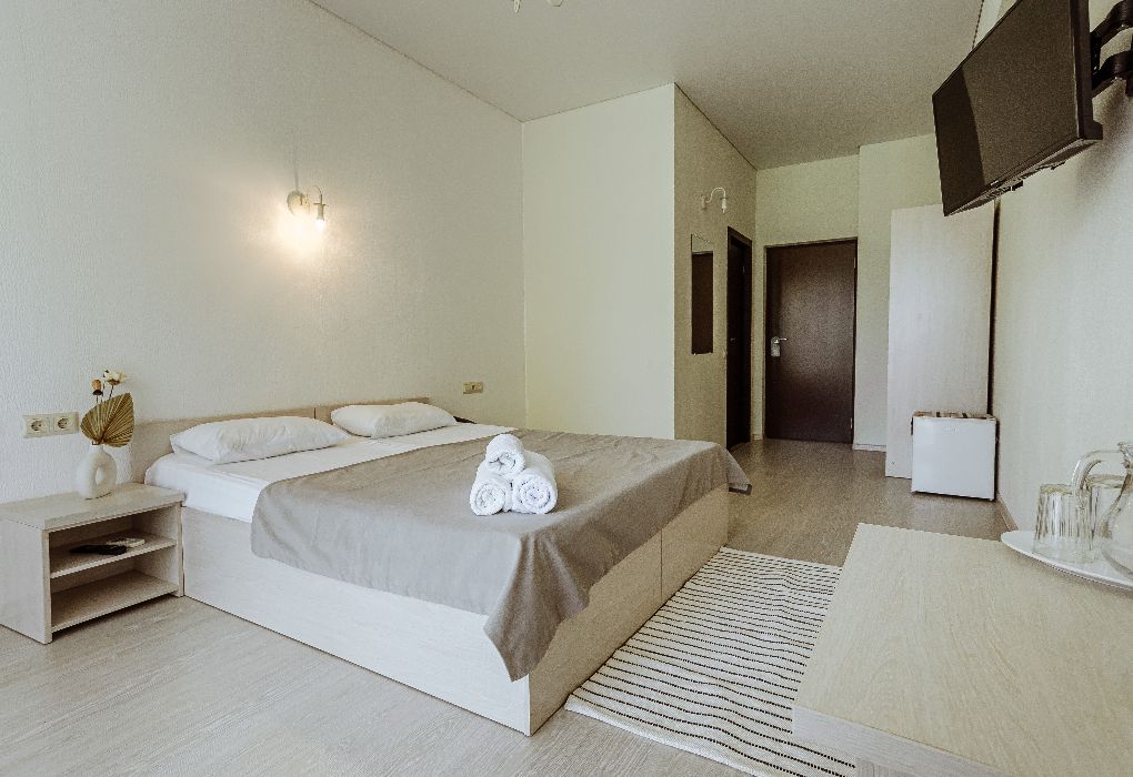 Ривьера предлагает для размещения комфортабельные номера рядом с морем, хорошей собственной территорией с садом. В отеле 4 этажа с двухместными номерами категории «стандарт», «полулюкс» и «люкс». Для удобства отдыхающих есть собственная парковка. В распоряжении гостей будут балкон с потрясающим видом, современная мебель, телевизор, холодильник и кондиционер.