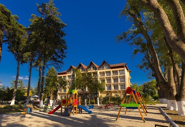 Семейный отдыхДостоинстваПросторные светлые номера. На каждый прием пищи в столовой есть выбор из 2-3 блюд. Рядом с комплексом есть кафе, где божественно запекают форель. Много развлечений для детей: площадка, батут, игрушки. Два бассейна, которые чистят несколько раз в неделю.