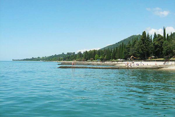 Поездом или самолетом – до г. Сочи (Адлер), далее на общественном транспорте или на такси до «Казачьего рынка» (8 км от ж/д вокзала, 15 км от аэропорта), затем пройти пешком около 500 м до пограничного поста на р. Псоу до границы России и Абхазии. После самостоятельного прохождения паспортного и таможенного контроля до места отдыха можно доехать на автобусе, маршрутном такси или воспользоваться услугами частных водителей.