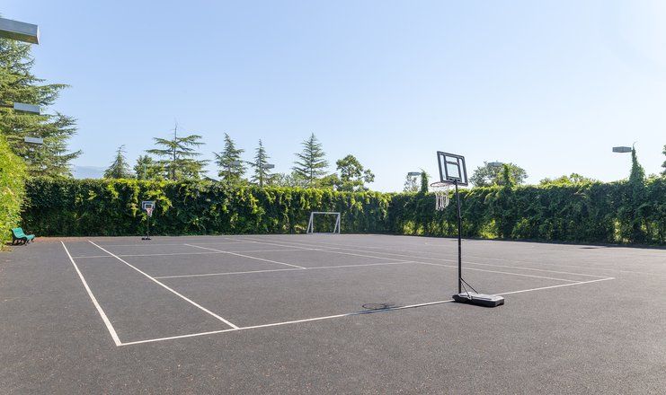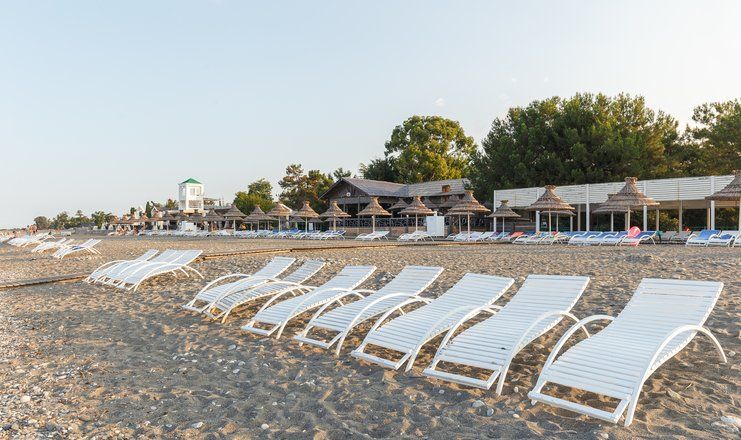 Для активного отдыха подготовлены увлекательные экскурсионные программы по красочной Абхазии, два бассейна с морской водой и уникальной системой очистки воды на территории, работает верёвочный парк, игровая и спортивная площадки. Также неподалеку расположен пляж — чистая вода и неповторимый хвойный аромат. Покрытие — средняя и мелкая галька.