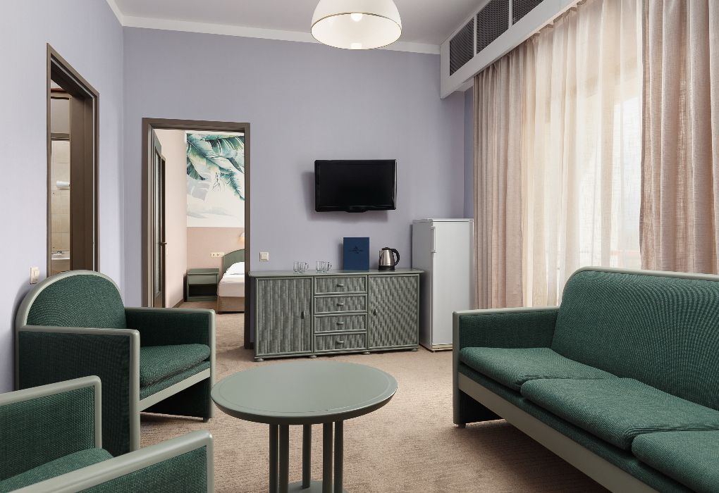 - Не взимается плата за проживание детей в возрасте до 3 лет включительно при условии их размещения с родителями (опекунами) в одном номере без предоставления отдельного места, а также при предоставлении детской кроватки детям до 3 лет (по запросу). При предоставлении дополнительного места детям от 3 до 12 лет плата взимается согласно ценам за проживание в санатории.