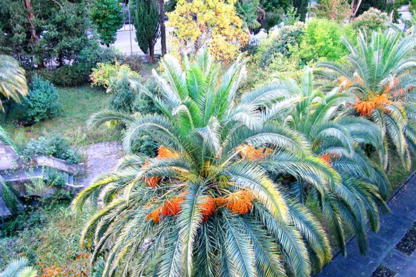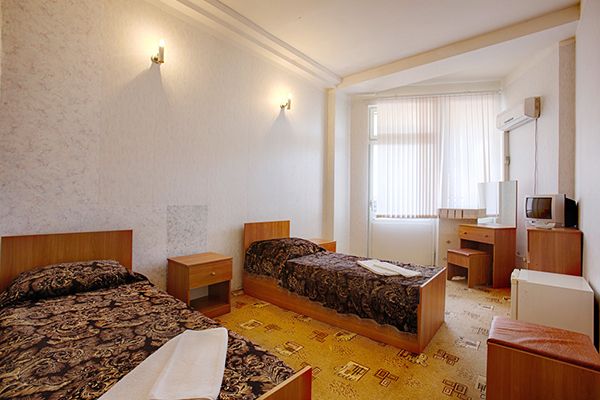 Презентабельное здание санатория «Сана» - 8-этажное строение, окруженное пальмами и другой южной растительностью. Из окон и с балконов открывается чудесная панорама окрестностей. Здесь приятно встречать рассветы и провожать уходящий день в дружеском или семейном кругу. Номера, обставленные удобной мебелью, оснащены современной техникой – кондиционерами, телевизорами, холодильниками. Интерьер выполнен в приятных светлых тонах.