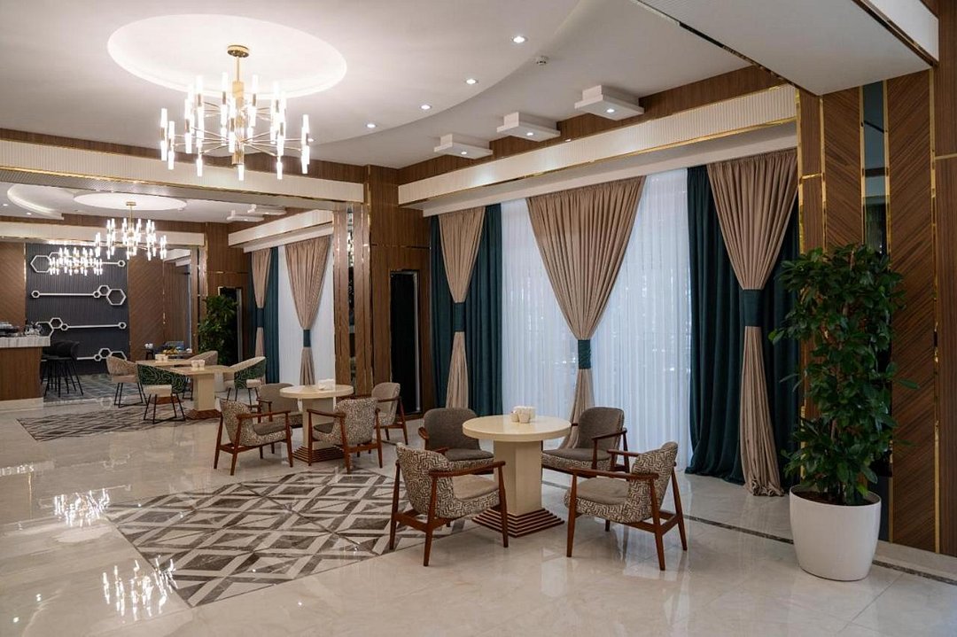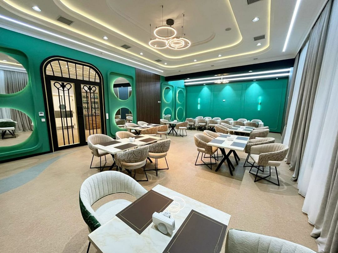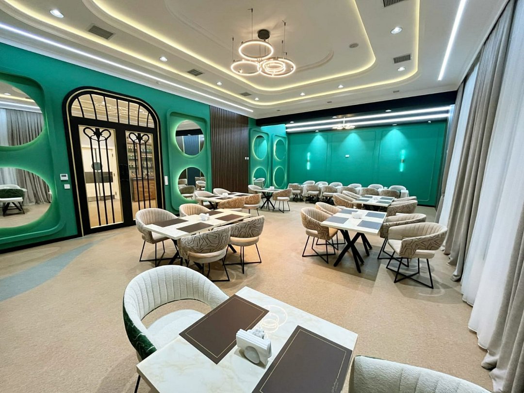 Ресторан предлагает гостям высококачественное питание, которое будет сопровождать их во время отдыха и лечения. Интерьер ресторана выполнен в современном стиле, с просторными и удобными зонами для сидения. Ресторан рассчитан на 130 человек и предлагает блюда различных кухонь, что делает его гастрономический опыт поистине уникальным.