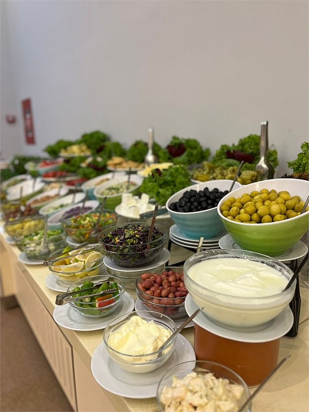 Питание организовано с учётом здоровья и сбалансированного рациона. Трехразовое питание подается в формате шведского стола, предоставляя гостям широкий выбор блюд. В меню ресторана представлены блюда азербайджанской, турецкой, европейской и восточной кухни, которые удовлетворят вкусы самых требовательных гурманов. Кроме того, для гостей с особыми диетическими требованиями или потребностями в диете также предусмотрены индивидуальные меню.