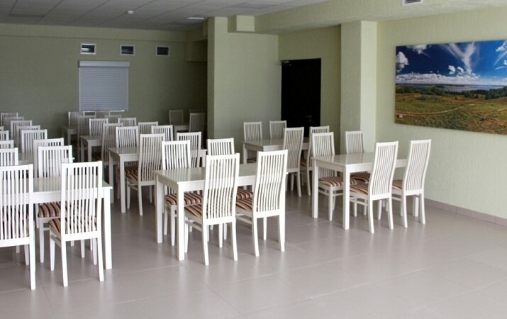В столовой комплекса организовано 3-разовое комплексное питание. В корпусе располагаются ресторан, бар, кафе, лобби-бар, банкетный зал для проведения юбилеев, свадеб, выпускных вечеров, банкетов.