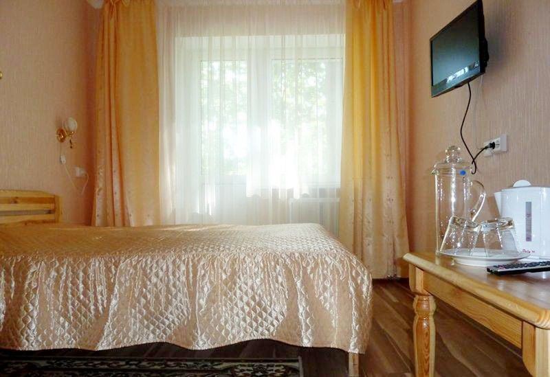 НедостаткиСама комната маленькая, если разложить диван, то практически не остается места. Вода из-за ржавчины цвета кваса, может сейчас стало лучше. Номер требует ремонта, из душа текла вода на пол, правда починили.