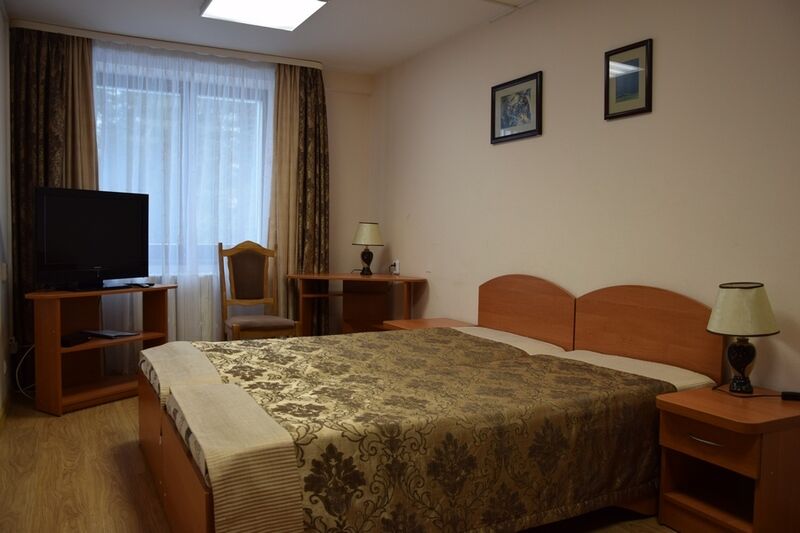 В одноместных номерах находится кровать или тахта (в зависимости от номера) стол, стул, телевизор, холодильник, чайник.