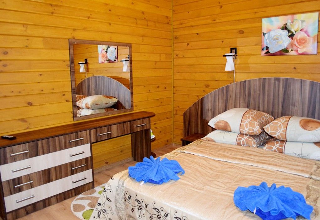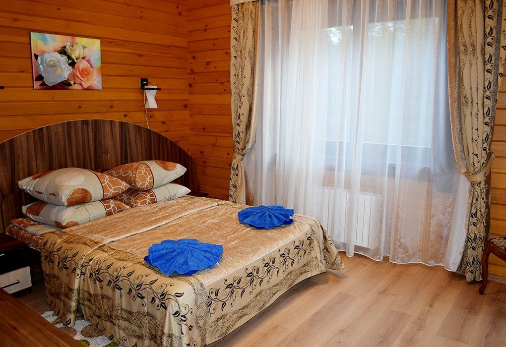 №2, №3 (деревянный коттедж). В доме №2, №3 расположены два номера категории «люкс». Каждый номер с отдельным входом. На первом этаже один номер «люкс» - спальная комната, гостиная с выходом на террасу, кухня, прихожая, санузел с душевой кабиной. На втором этаже, второй номер «люкс» - спальная комната, гостиная, кухня, прихожая, санузел с душевой кабиной. №1. В доме №1 расположены: один номер категории «люкс» (2-уровневый) и два номера категории «полулюкс» (однокомнатные), расположенные в левом и правом крыльях дома. Каждый номер с отдельным входом, имеется интернет. На первом этаже номера «люкс» - спальная комната, гостиная, холл, санузел с душевой кабиной. На втором этаже - спальная комната. Номер «полулюкс» состоит из жилой комнаты, прихожей, санузла с душевой кабинойУслуги и удобства