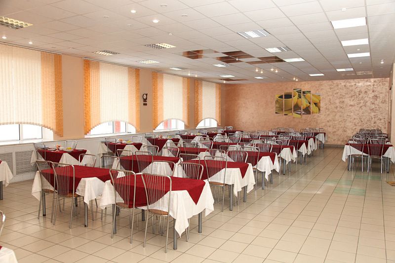 В распоряжении отдыхающих просторная столовая с двумя обеденными залами на 230 и 100 посадочных мест. Предлагается диетическое 5-разовое питание, меню тщательно сформировано с учетом потребностей организма в белках, жирах, углеводах, витаминах и минералах. Такой рацион идеально подходит для тех, кто страдает заболеваниями сердечно-сосудистой системы или диабетом.