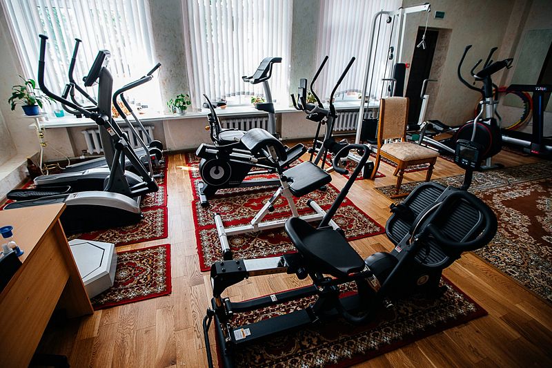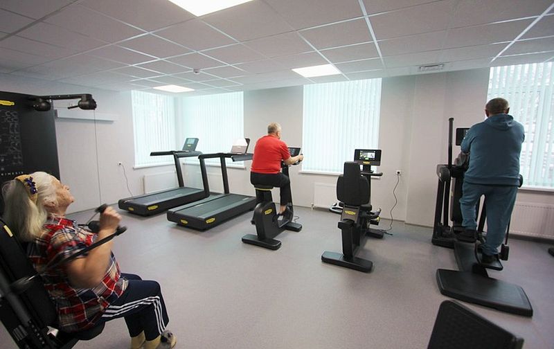Реабилитационный тренажер с биологической обратной связью «ReaTerra»; тренажеры «TechnoGym» (15 ед.): силовые, гребной, велотренажеры, беговые дорожки.
