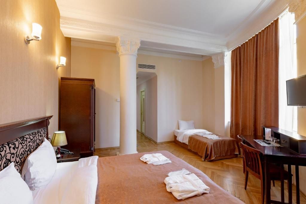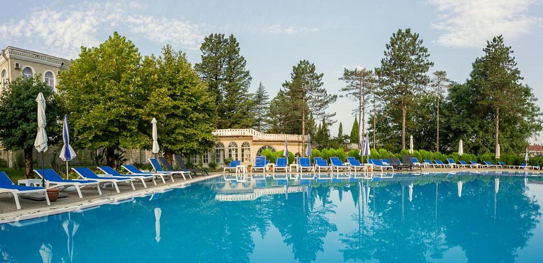 Путешествие с семьейВторой раз отдыхаем здесь. Если не придираться к мелочам, то очень красивый и величественный комплекс. На любителя.Я даю самую высокую оценку, так как во-первых, я дважды по 2 недели останавливалась здесь и оба раза нам делали апгрейд номера, во-вторых, очень приветливые сотрудники, Шорена умничка, врач Манана настоящий профессионал и к тому же замечательный, отзывчивый человек и просто добрейший доктор, каких в наше время осталось очень мало, в-третьих, мне такой стиль после турецкой и эмиратской роскоши все более стал нравиться, все так необычно, пахнет стариной, грандиозностью и одиозностью советских времен: везде 5-метровые потолки, старинный паркет в номерах и ресторане, мебель и двери массив из натурального дерева, везде лепнина, мраморные лестницы и чугунные резные балюстрады – это все на любителя. В первый раз мы приезжали с сестрой, нам дали номер со спальной и отдельной гостиной. Во второй раз нам с мамой любезно выделили номер рядом с лифтом и с двумя раздельными спальнями. Оба раза в обоих номерах сан.узлы были чистыми, современными. Старшие сестры жили вдвоем в другом номере. Еда здесь хоть и не очень разнообразная, зато все свежее и натуральное, первые дни ешь все с удовольствием, но все равно через неделю приедается. Территория большая, невероятно зелёная и очень красивая. Приготовьтесь к тому, что почти каждый день будете видеть молодожен с их свитой, приезжающих в этот комплекс для свадебных фотосессий. В один выходной как-то я насчитала 12 пар и с ними десятки друзей и подружек женихов с невестами, каких только машин и нарядов не насмотрелись, зато было не скучно, красиво и интересно))) До источника #6 с этого санатория очень близко напрямую через парк и речку. Про то, что пишут грязно, это не так. Просто все старинное, поэтому создается впечатление, что не так чисто. Полотенца нам меняли каждый день. Белье мы сами просили не менять часто, только через неделю проживания. Были в наличие халаты и одноразовые тапочки. Отельная косметика, особенно гель для душа и жидкое мыло, вполне приличные, запах и консистенция мне понравились, шампунем я всегда пользуюсь своим. Чайный набор в номере был, но пакетики с чаем мы брали из ресторана. Ежедневно нам оставляли 2 Бутырки воды. Но чай мы пили с водой из крана, она здесь очень чистая и качественная, нам позже несколько человек подтвердили тот факт, что все местные пьют даже сырую воду из крана. В общем, о вкусах не спорят, но мне здесь нравится. Хотелось бы более тщательной реставрации