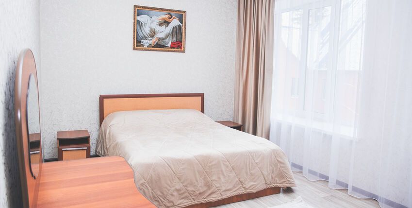 Одна комната, односпальные и двухспальная кровати, мягкая мебель, журнальный столик, Wi-Fi, спутниковое телевидение, чайный сервиз, электрический чайник, холодильник, душевая кабина, сан.узел.