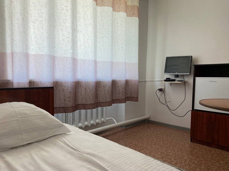 Оборудованная ванная комната: душевая, с/у, умывальник, зеркало. Мебель: односпальная кровать, рабочая зона, шкаф, прихожая, прикроватная тумбочка. Оборудование: кабельное телевиденье ОТАУ TV , мини холодильник.