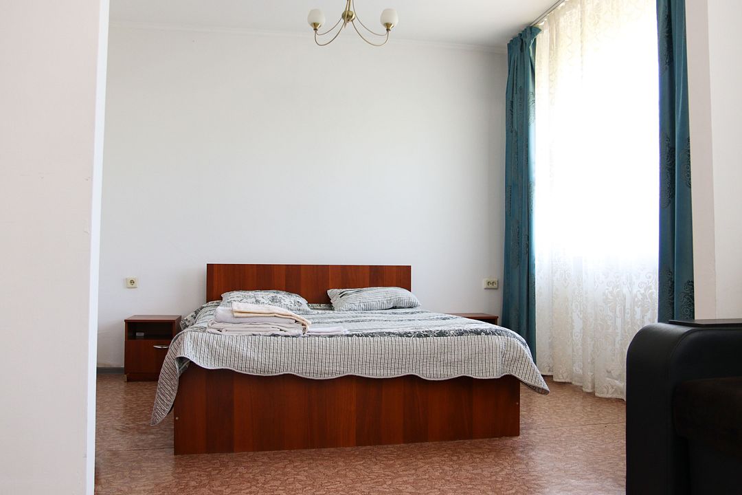 Оборудованная ванная комната: душевая, с/у, умывальник, зеркало. Мебель: двуспальная кровать, раскладной диван, горка, рабочая зона, шкаф, прихожая. Оборудование: кондиционер, кабельное телевиденье ОТАУ TV , мини холодильник.