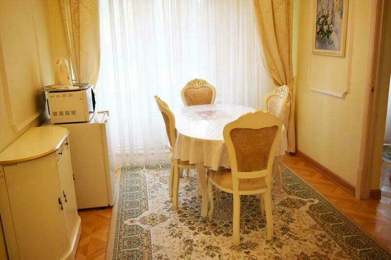 Имеется в санатории и так называемое ВИП-заселение, которое включает в себя трехкомнатный номер со всеми удобствами и прекрасным видом на горные ландшафты.