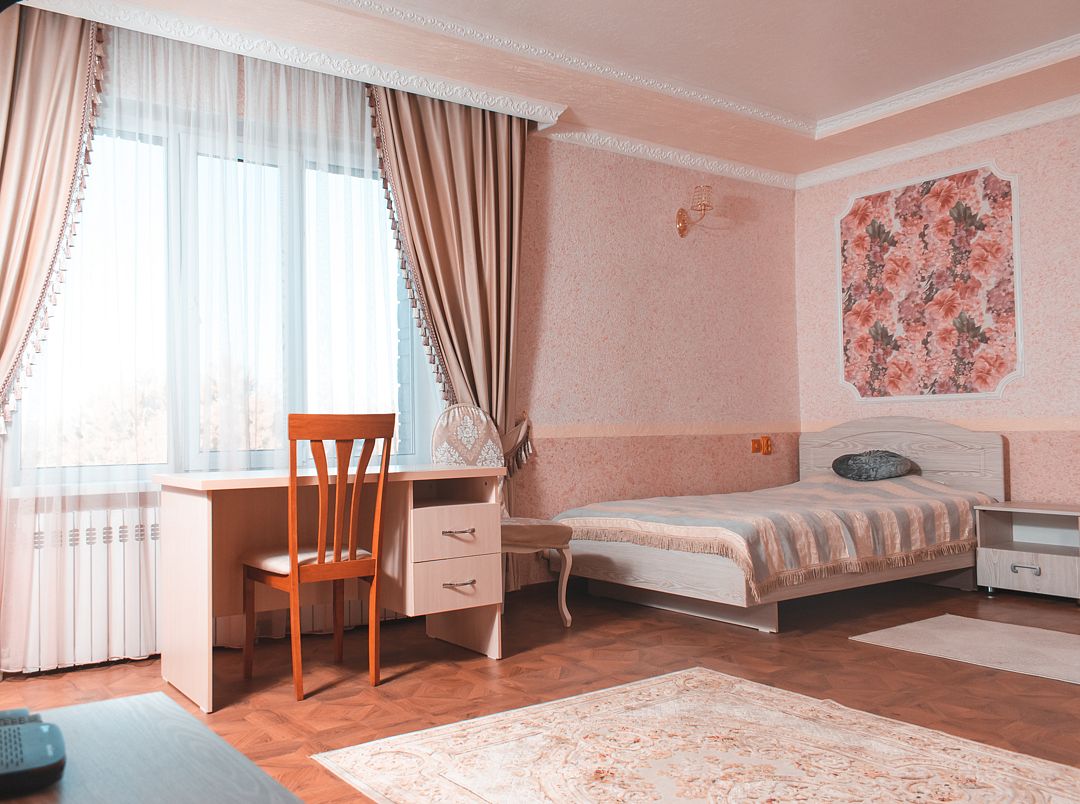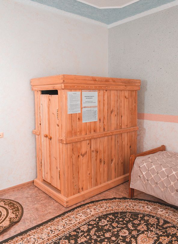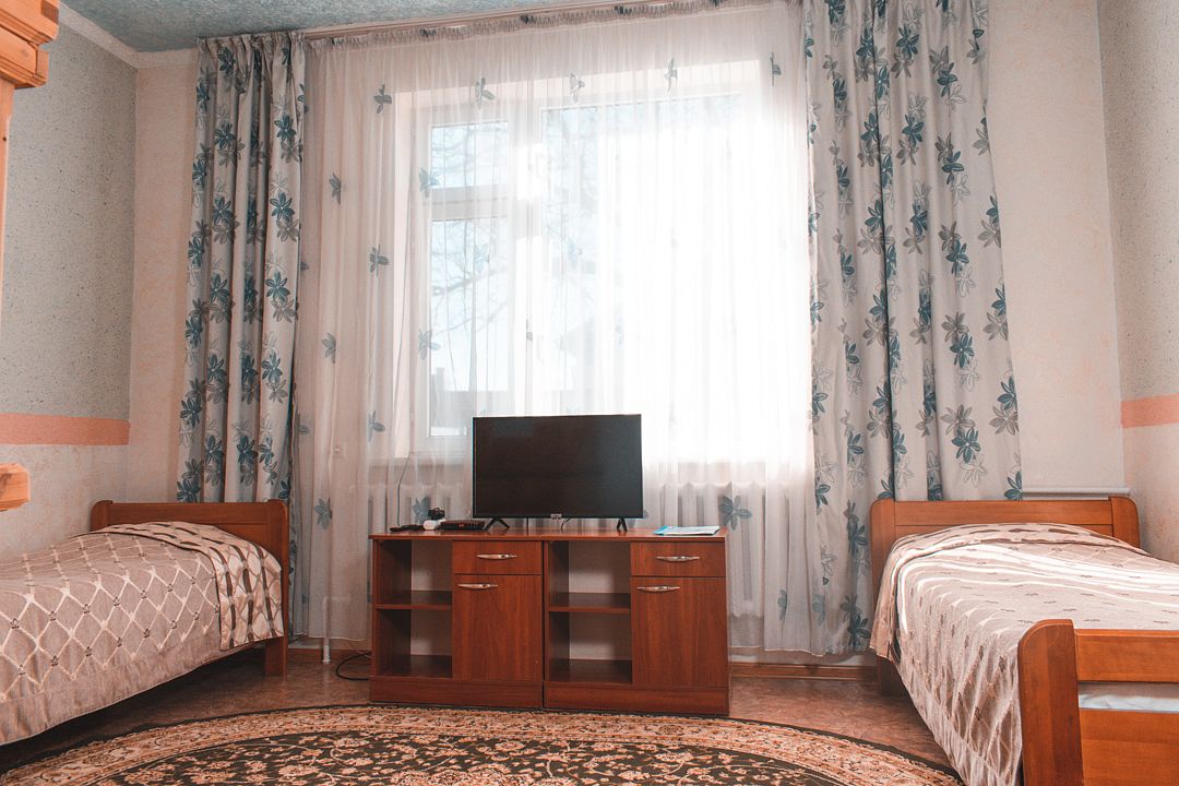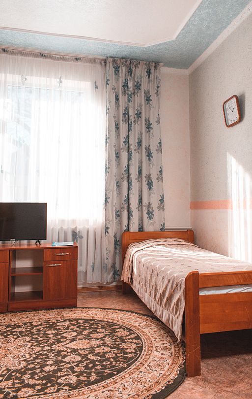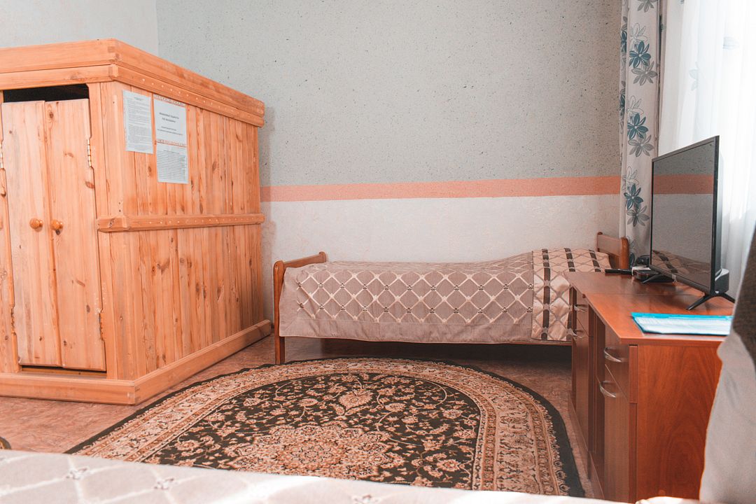 В коридоре присутствуют один женский и мужской туалеты, которые являются общими для каждого из номеров первого этажа. На втором этаже располагаются исключительно номера и два общих сан. узла. В каждом номере имеется телевизор, две односпальные кровати, прикроватные тумбочки, камера Райха, шкаф. Доступ к Wi-Fi сети.