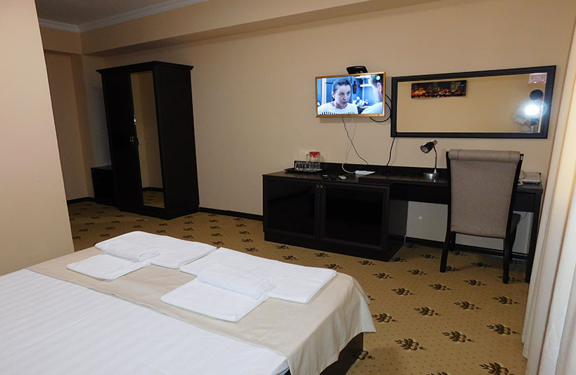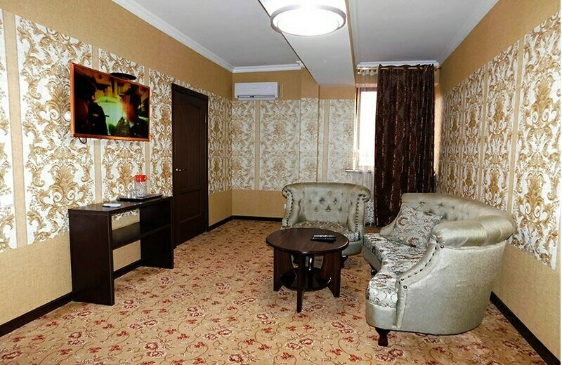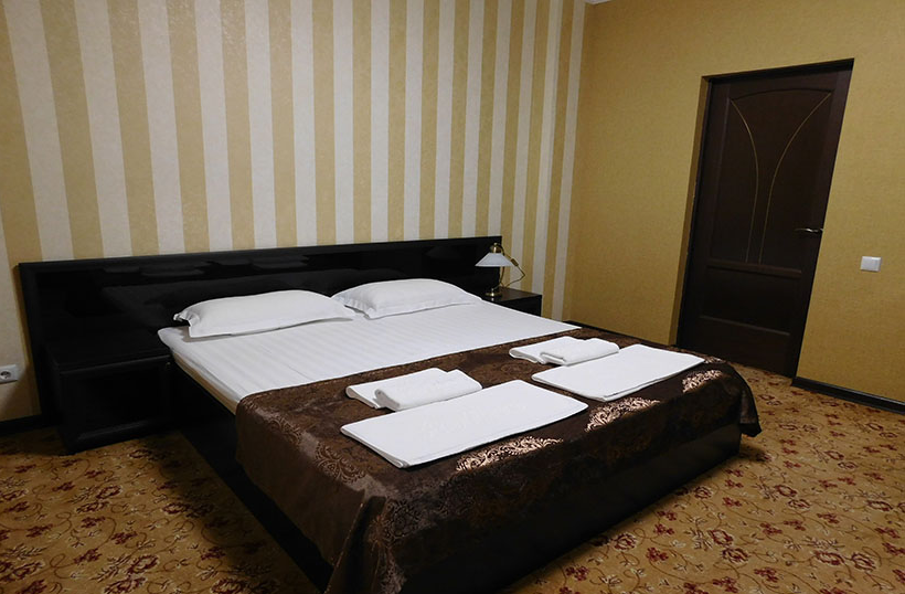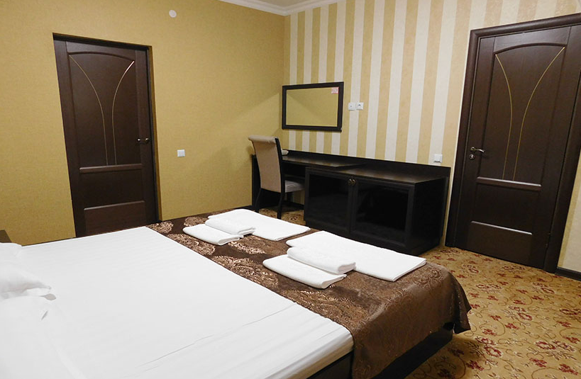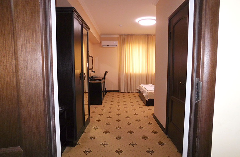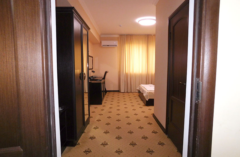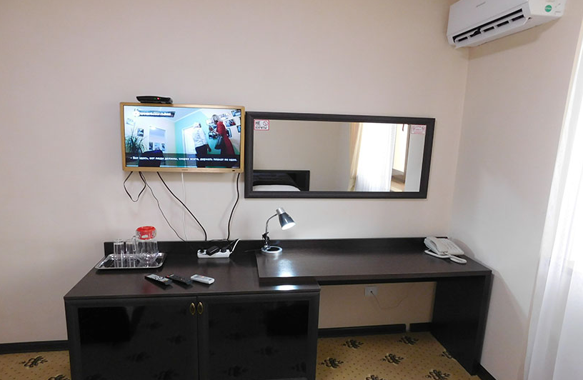 2 комнаты (спальня и гостиная), новая удобная мебель с широкой кроватью, кондиционер, телефония, кабельное телевидение (Полный пакет 136 каналов), свежие фрукты в номер ежедневно, холодильник, электронный сейф с персональным кодом, 2 сан.узла, ванной, феном и набором туалетных принадлежностей wi-fi в комнате для гостей бесплатно, детская развлекательная комната, бильярд, настольный теннис, шашки, шахматы. Непосредственно перед санаторием имеется сквер для пеших прогулок.