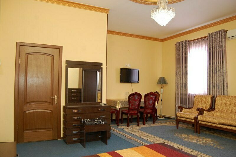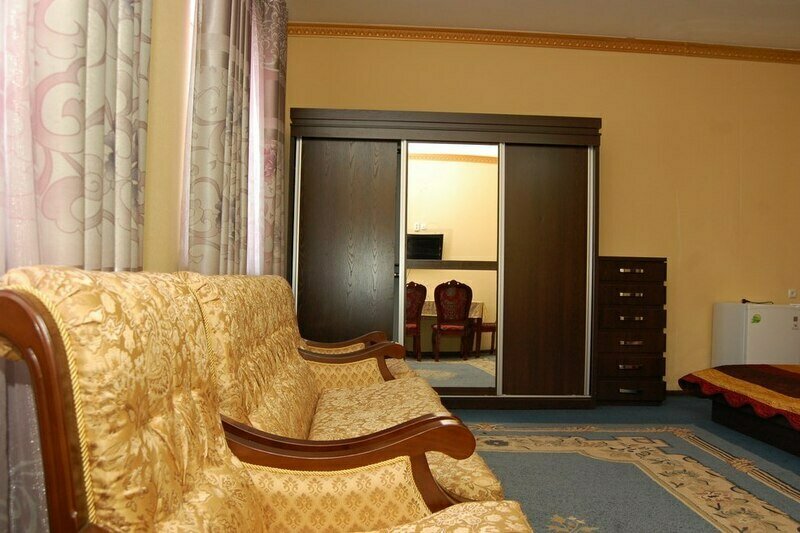 Заведение располагает широким номерным фондом. Постояльцы могут разместиться в комнатах класса «люкс» и европейского стандарта, оснащенными всем необходимым для комфортного отдыха. До аэропорта и ж/д вокзала Шымкента расстояние составляет чуть более 100 км. При необходимости для гостей курорта организуется трансфер.