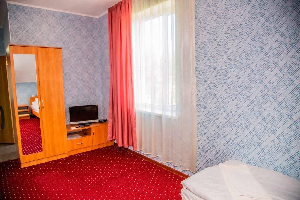 Кровати, шкаф, стол, ТВ, Х, с/у, душ, нет дивана