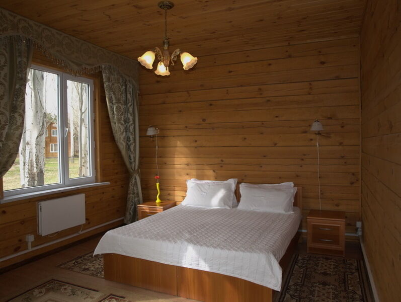 Деревянный1-этаж.домик, 60 кв.м. Прихожая, гостиная, совмещенная с кухней (без плиты), с/у с душ.кабиной, спальня. ТВ, Х, телефон, утюг, гладильная доска, чайный набор.
