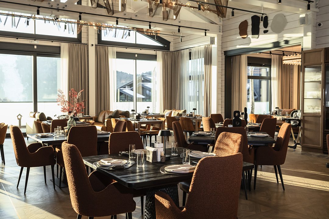 Интерьер выполнен в спокойных природных оттенках, а большие окна наполняют пространство естественным светом и открывают вид на горы, лес или долину. Здесь легко расслабиться, восстановить силы и почувствовать единение с природой.
