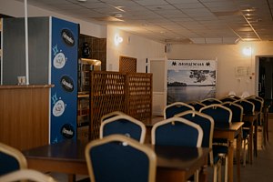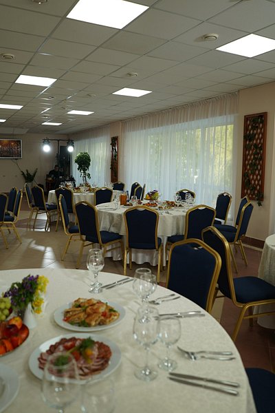 В кафе-столовой можно отведать вкуснейшие блюда и насладиться видом на лес. Также есть возможность организации и проведения мероприятий любого масштаба и тематики.