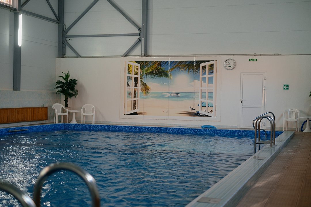 Читать полностьюКрытый подогреваемый бассейн с противотоком, каскадом, водным фонтаном и детской зоной.