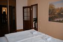 В спальне двуспальная кровать, прикроватные тумбы, шкаф для одежды.