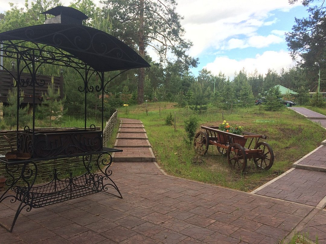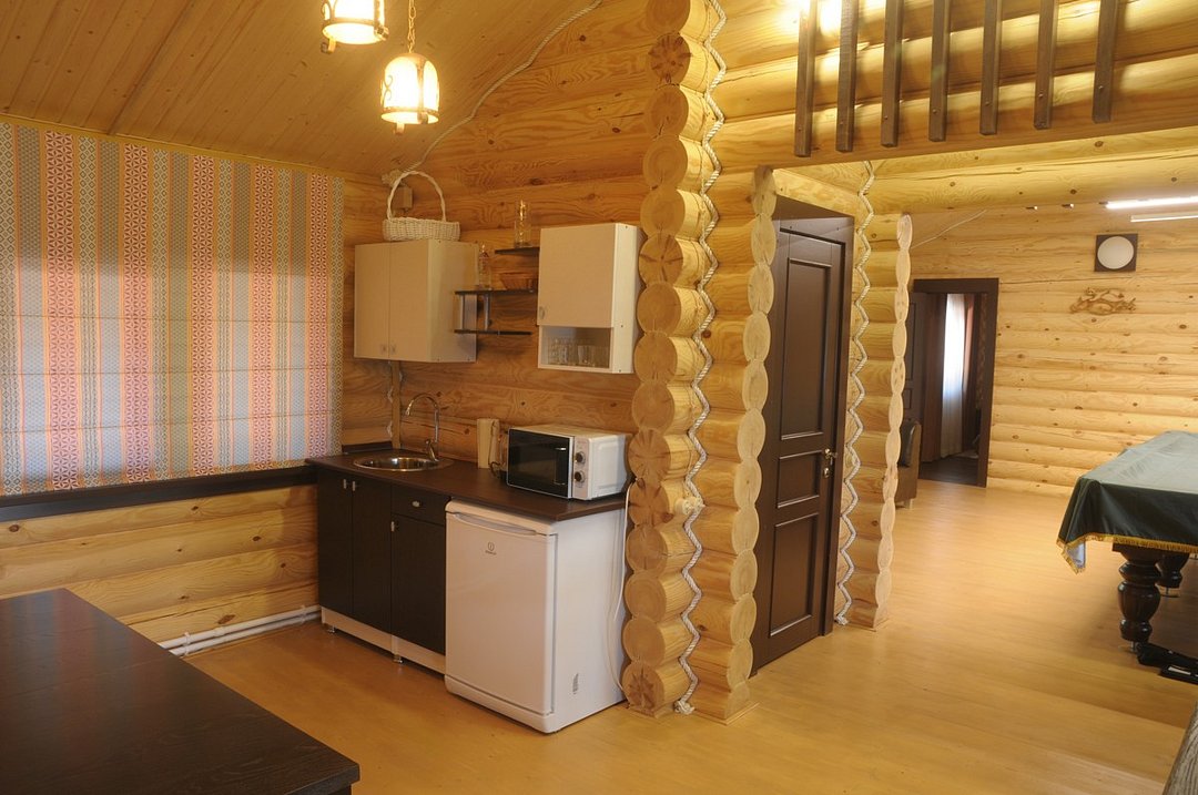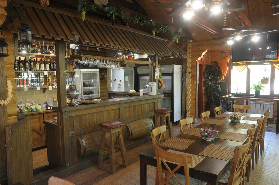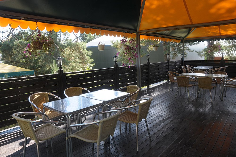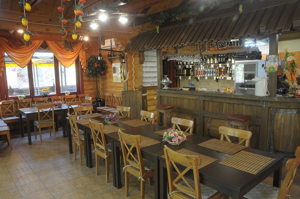 Кафе «Домик в деревне» с уютной летней верандой и великолепным видом на сосновый бор. Кафе рассчитано на 30 посадочных или 40 фуршетных мест. В помещении кафе на цокольном этаже расположена бильярдный зал: имеется два стола русский и американский бильярд.