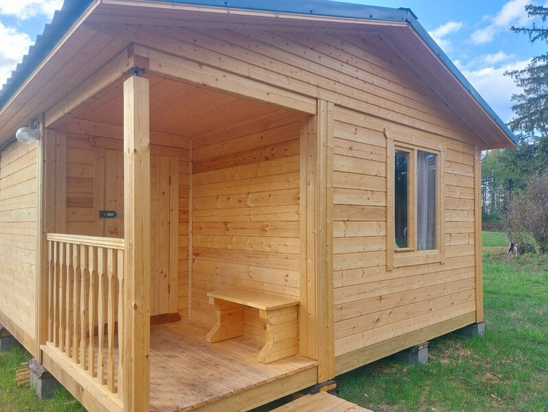 Номер в деревянном домике с одной 2-спальной кроватью и кухней