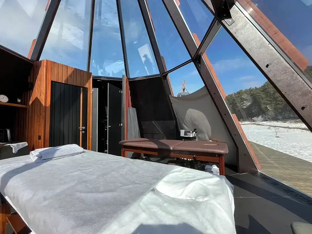 Представьте, как просыпаетесь утром, открываете глаза и видите сквозь панорамные окна великолепный вид на лес, залитый солнечным светом. А снаружи зеркальные стены создают иллюзию бесконечного пространства, отражая красоту природы.