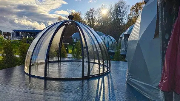 На берегу озера расположена кальянная с 4 застекленными полусферами для отдыха гостей Buhlovo Park. Каждая сфера вмещает в себя до 15 человек.