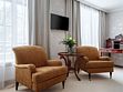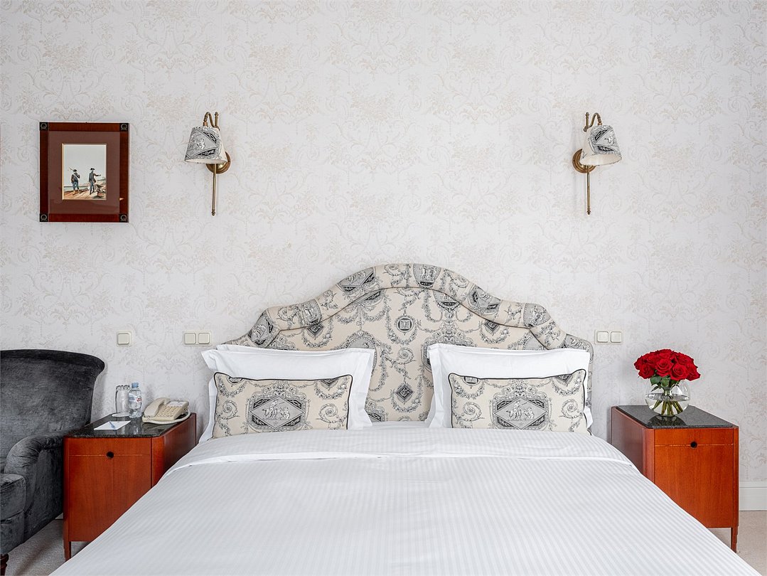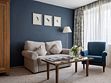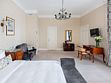Это большой однокомнатный номер площадью около 35 кв. м. с видом тихую улицу. В номере к вашим услугам одна большая кровать, журнальный столик, диван, LCD телевизор, прямая телефонная линия, сейф, беспроводной доступ в Интернет и комплементарный мини бар с ассортиментом безалкогольных напитков. Ванная комната с ванной, полами с подогревом, феном, набором полотенец, тапочками, халатами и косметическими принадлежностями. Ресторанное обслуживание в номере 24 часа.