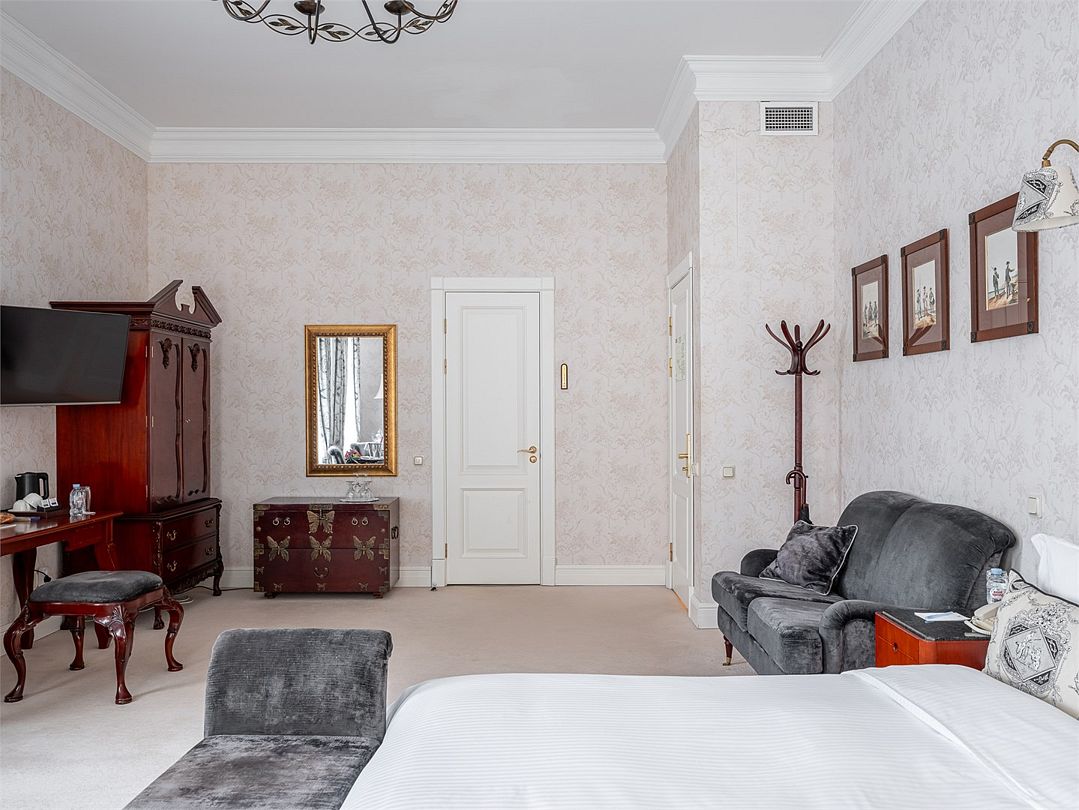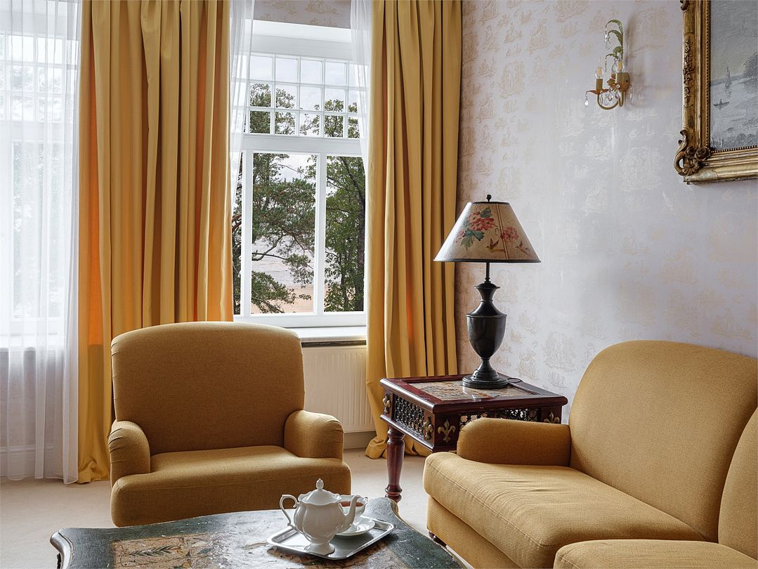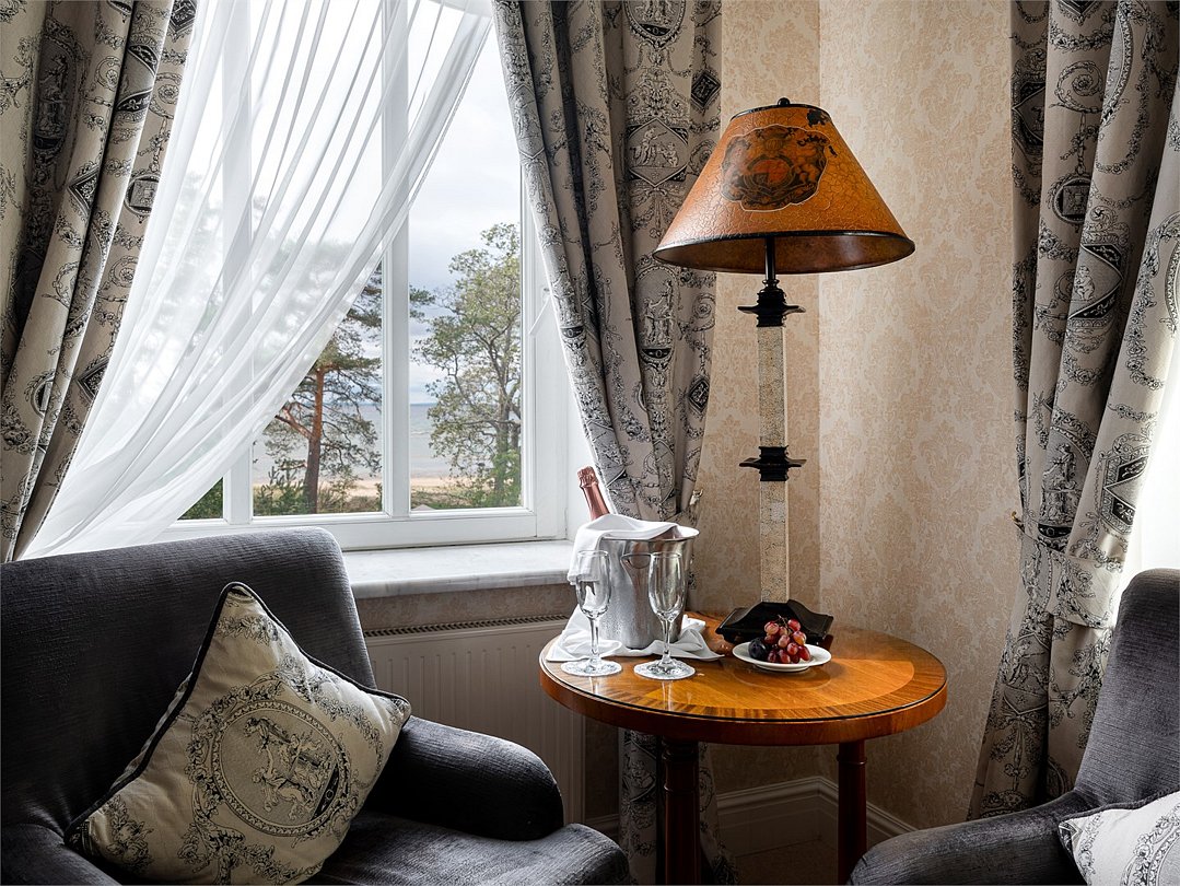 Элегантный однокомнатный номер, площадью более 40 кв. м., с изысканным интерьером в классическом стиле и элементами антиквариата. Номер оснащен собственной террасой с видом на Финский залив и персональной сауной. Здесь Вы найдёте всё для приятного романтического отдыха.