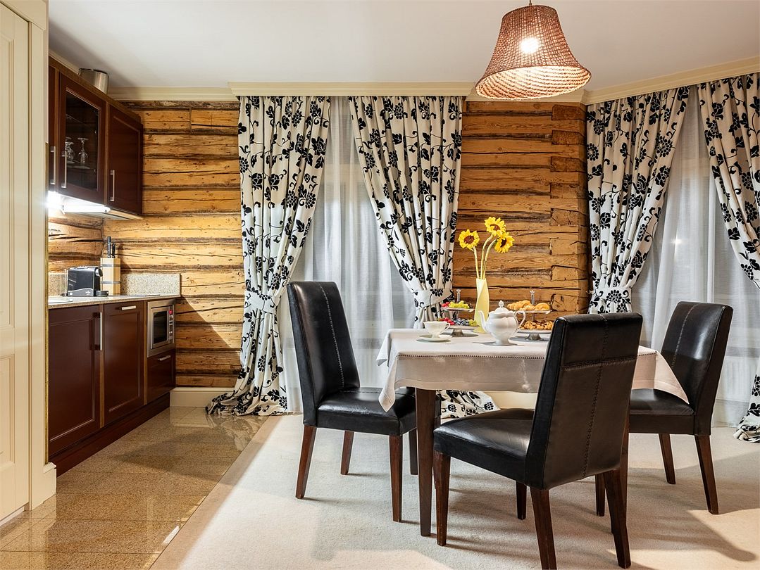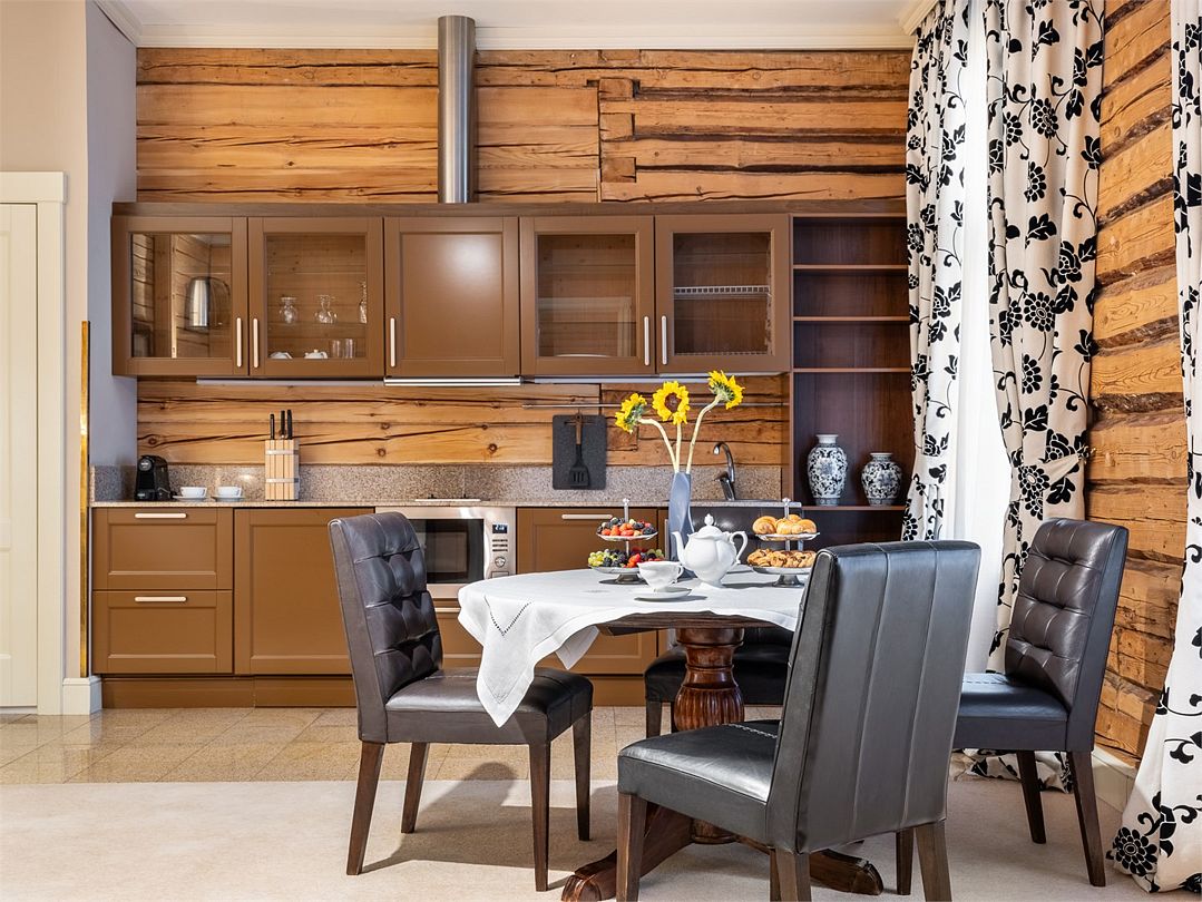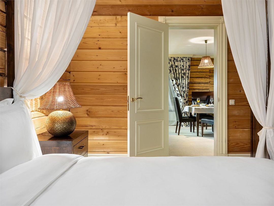 Просторные двухкомнатные апартаменты площадью 65-75 кв. м. расположены на первом или втором этажах. В номере к вашим услугам: двуспальная кровать, мягкая мебель, письменный стол, журнальный столик, обеденный стол, телефон, LCD телевизор, беспроводной доступ в Интернет, сейф. Кухня оснащена встроенной плитой, микроволновой печью, посудомоечной машиной и холодильником. В большой ванной комнате расположена круглая ванна на уровне пола или ванна на львиных лапах, душевая кабина, фен, халаты, тапочки и европейские косметические принадлежности. Ресторанное обслуживание в номере 24 часа.