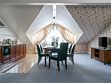 Роскошный мансардный апартамент площадью 150 кв. м. с двумя спальнями, просторной гостиной, удобным кухонным блоком, большой ванной комнатой, гостевой туалетной комнатой и небольшим балконом занимает весь третий этаж дачи Лихачева. Он идеально подходит для длительного проживания или празднования знаменательных событий. В номере к вашим услугам: две двуспальные кровати, мягкая мебель, письменный стол, журнальный столик, два обеденных стола на 8 и 4 человек, LCD телевизор, беспроводной доступ в Интернет, сейф. Кухня оснащена встроенной плитой, микроволновой печью, посудомоечной машиной, холодильником и отдельной морозильной камерой. В большой ванной комнате расположены: ванна на львиных лапах и душевая кабина. В гостевой ванной комнате установлена душевая кабина. В обеих ванных комнатах – пол с подогревом, фен, комплекты халатов и полотенец, тапочки, европейские косметические принадлежности. Ресторанное обслуживание в номере 24.