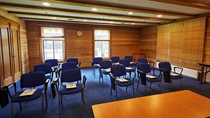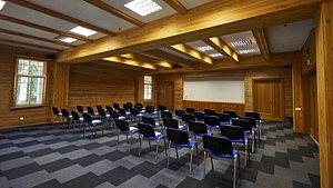 Площадь зала составляет 20 м2, для кофе-брейка и отдыха у участников конференции есть отдельная комната отдыха с собственным санузлом площадью 20 м2.
