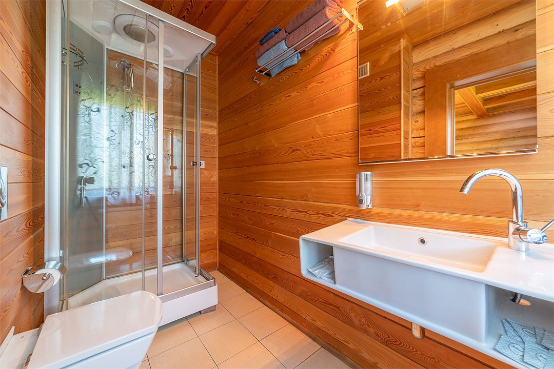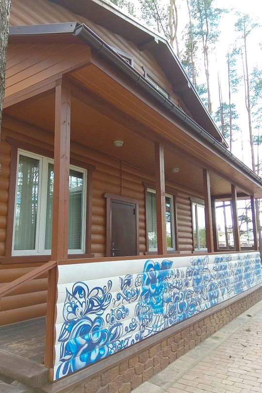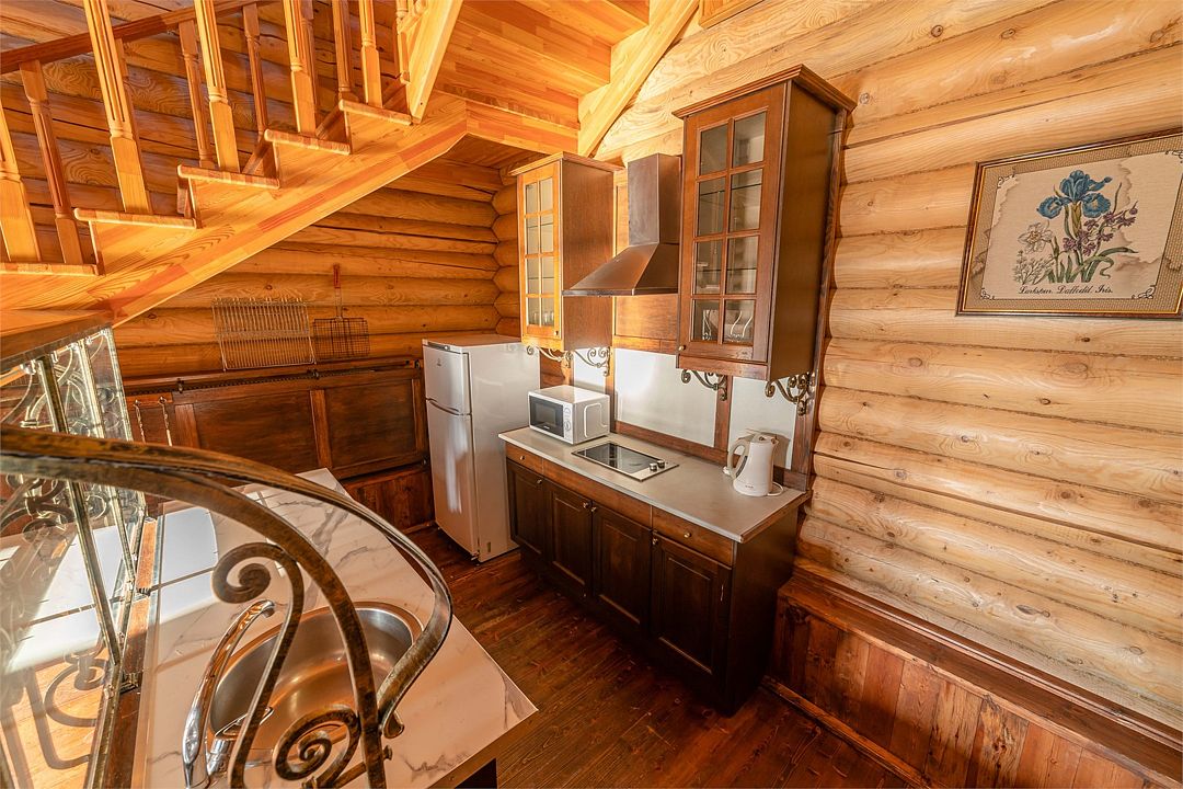 Уютный деревянный домик с камином, где царит теплая и камерная атмосфера. Здесь каждый момент наполняется особым согревающим настроением, создавая пространство для искренних семейных встреч.