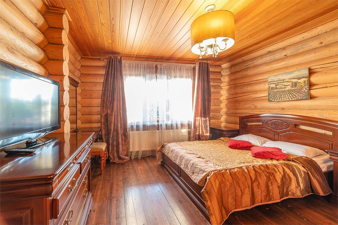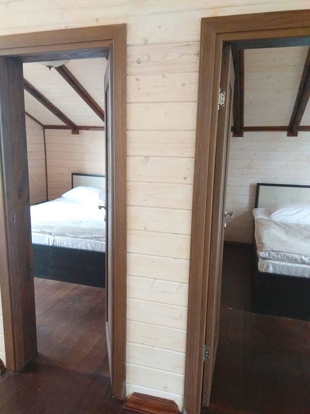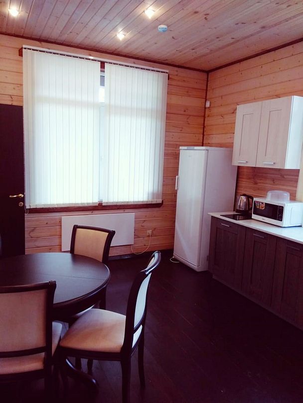 Деревянный 2-х этажный коттедж в Подмосковье для большой компании. Оснащен всем необходимым для комфортного загородного отдыха семьей и компанией: 2-мя гостиными (1-ой — с раскладным диваном и столом на 7 человек), 4-мя спальными комнатами с двухместными кроватями, 3-мя ванными комнатами (2-мя — с душевыми кабинами, 1-ой — с ванной), 1-ой туалетной комнатой, кухней, а также беседкой с зоной барбекю, 4-мя ТВ.