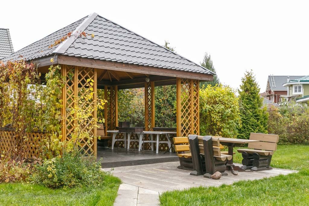 Деревянная беседка, украшенная живыми цветами, дарит атмосферу природной свежести и уюта, идеально подходя для тех, кто ценит нестандартные решения. Простор и натуральные материалы создают особый шарм этого места, где каждый гость ощущает связь с природой.