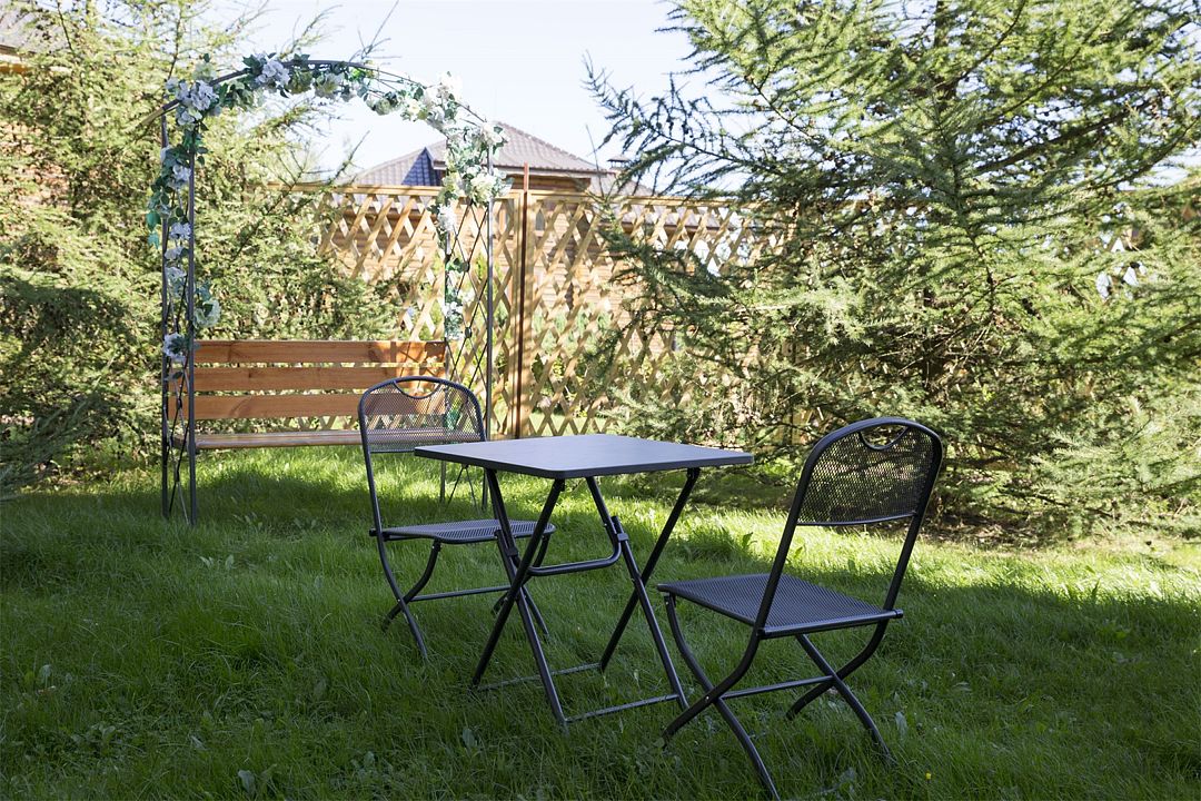Рядом с каждым коттеджем оборудована зона барбекю с мангалом и садовой мебелью.