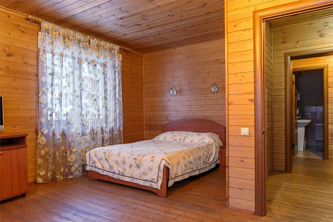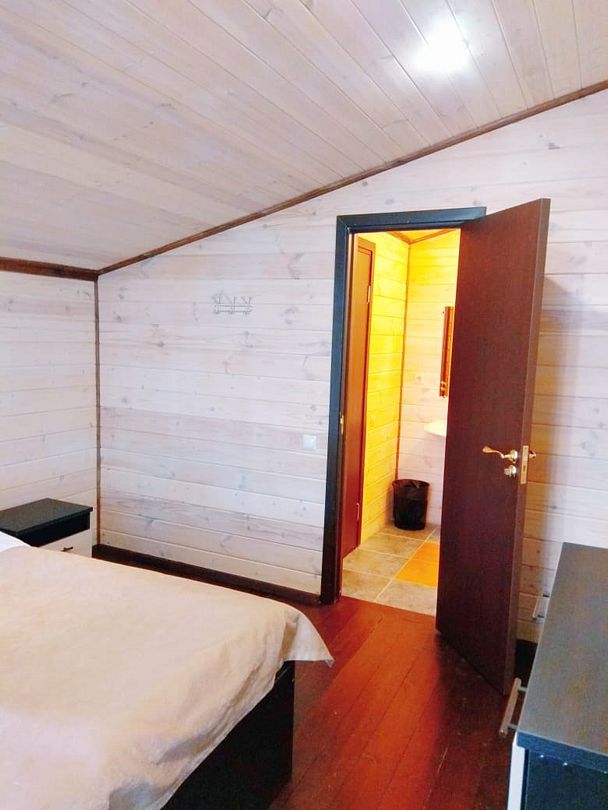 Современный 2-х этажный коттедж с сауной оснащен необходимой мебелью и оборудованием для загородного отдыха семьей или небольшой компанией: 1-ой гостиной комнатой с раскладным диваном, 1-ой спальной комнатой с двухместной кроватью, 1-ой туалетной комнатой с душевой кабиной, финской сауной, кухней и зоной для барбекю, 2-мя ТВ.