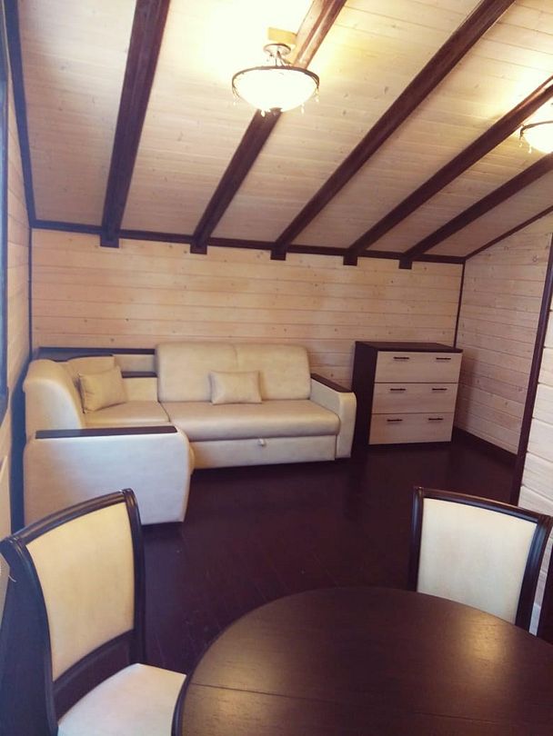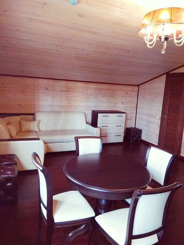 В коттедже есть все необходимое: две гостиные комнаты с набором мягкой мебели и двумя раскладными диванами, две спальные комнаты, две ванные комнаты с душевыми кабинами, кухня, оборудованная необходимой техникой.
